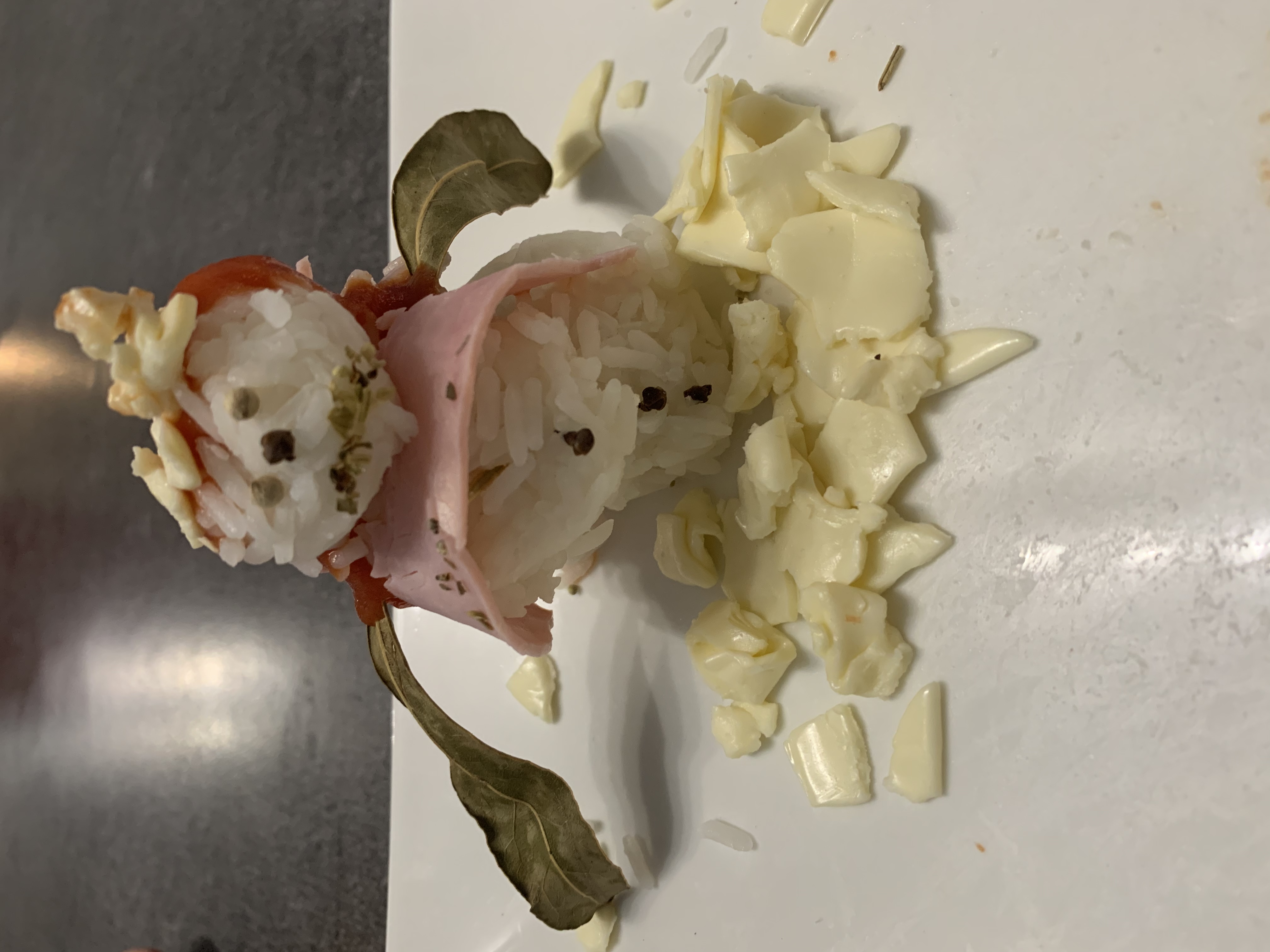 Chez Chloé , bonhomme de neige en riz, sauce tomate, herbe de Provence et jambon. Chez Tom un sapin vitaminé !
