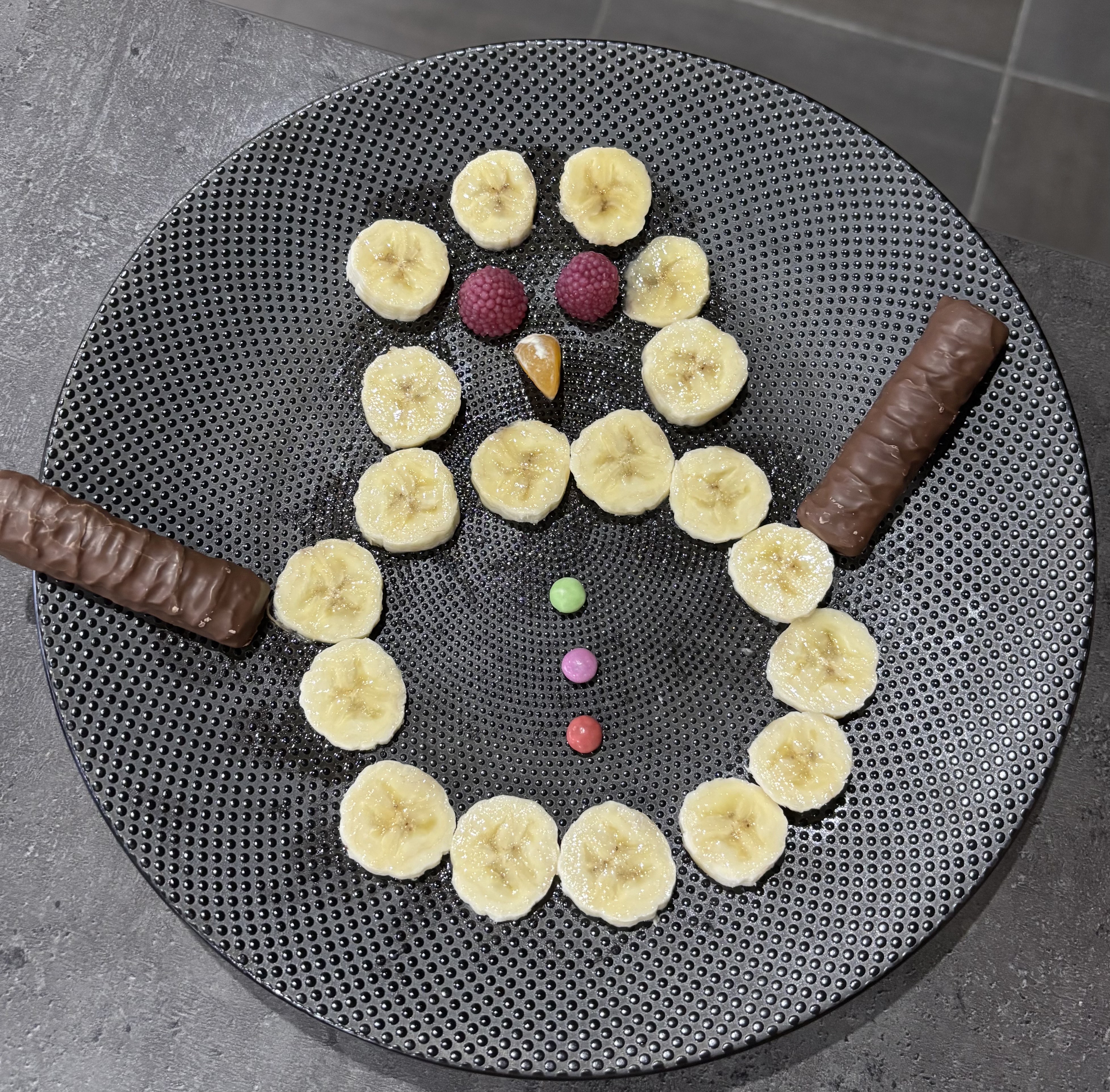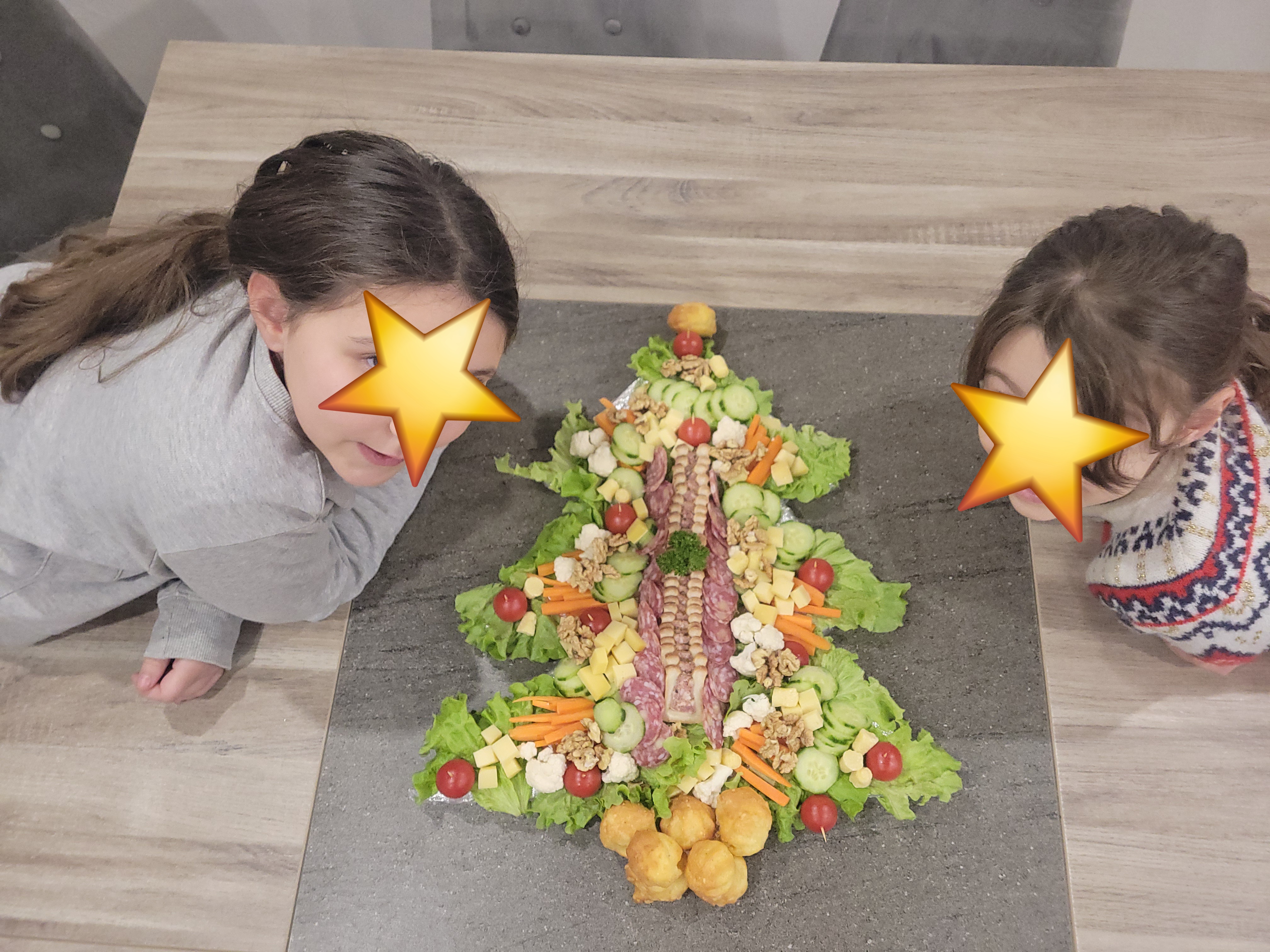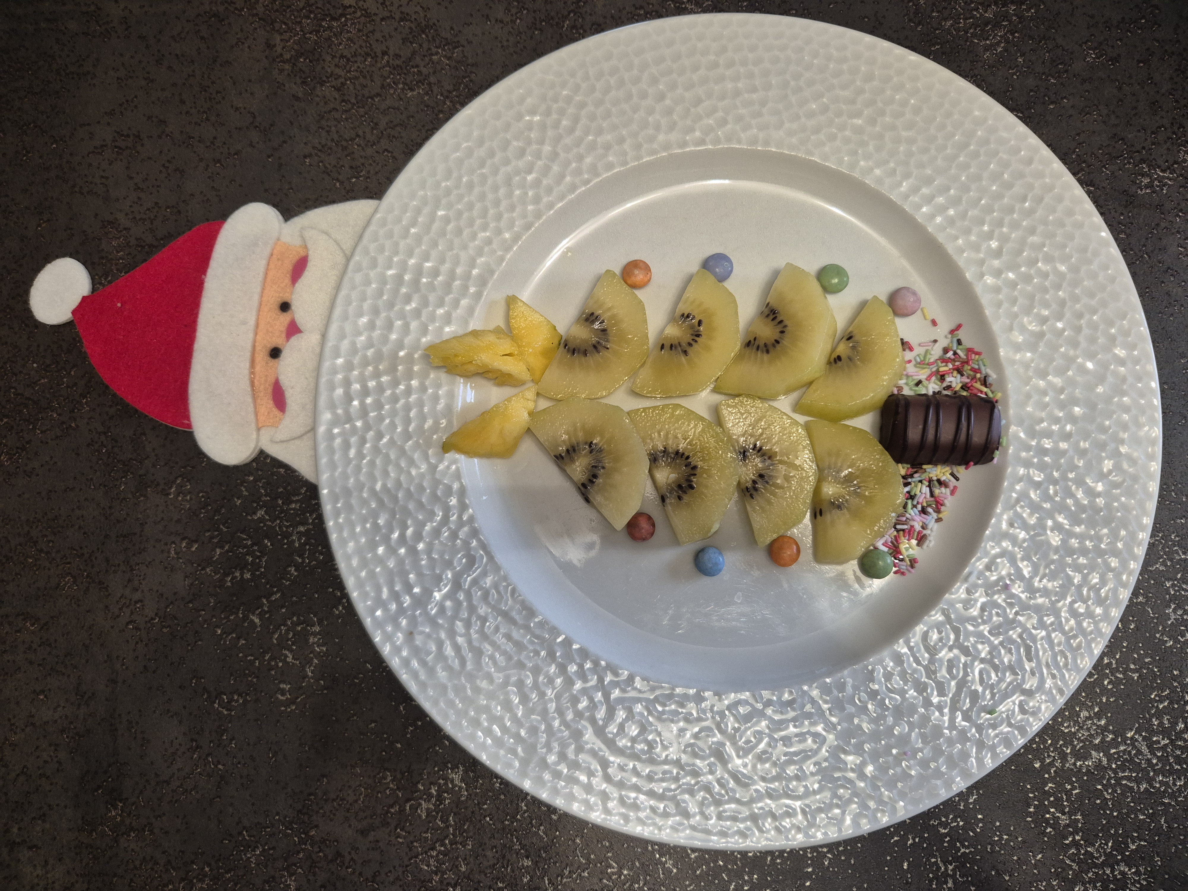 Noam opte pour un bonhomme de neige fruité, et Clémence un sapin apéro pour Noël . Chez Adèle, sapin poireaux et légumes pour digérer !