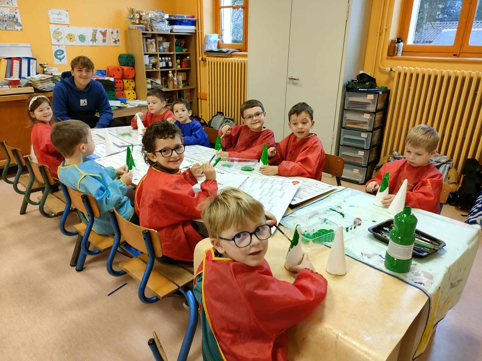 A manière de Niki de Saint Phalle, nous avons recouvert notre sapin en polystyrène d'une explosion de couleurs , de matériaux (pompons, strass, chenilles pailletées...).