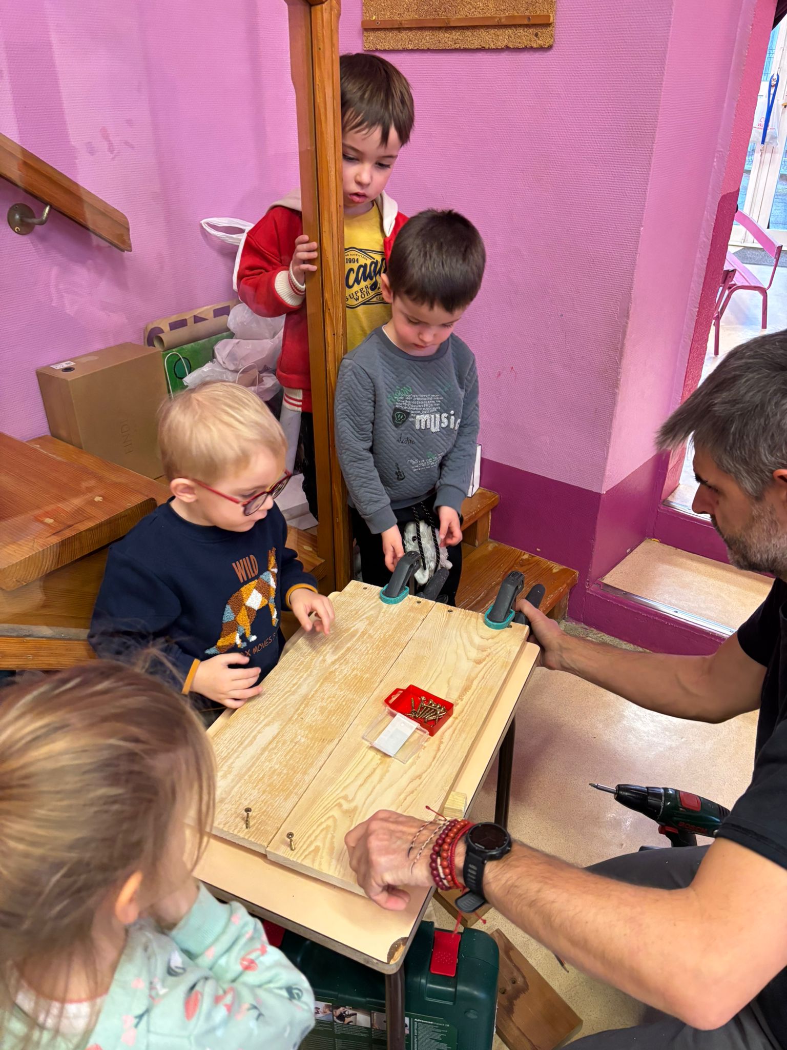 Au cours de cette 3ème période de l'année scolaire, nous avons à nouveau fait de la "menuiserie". Objectif, créer une boîte à livres.