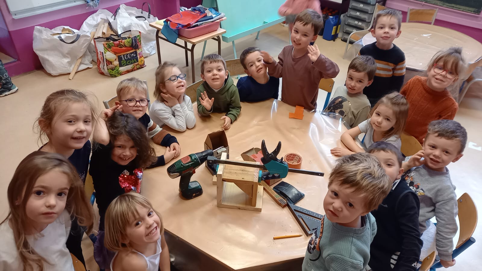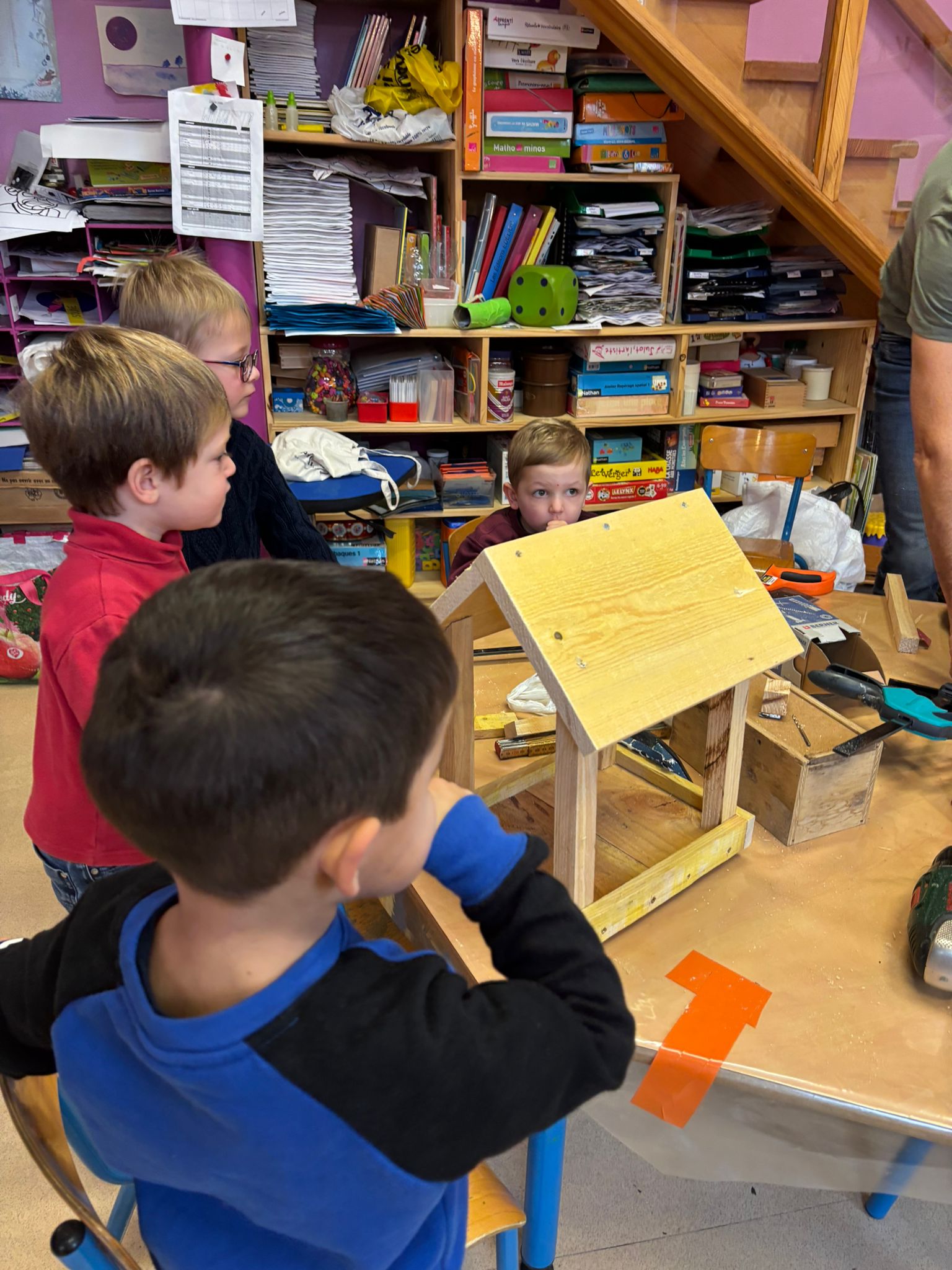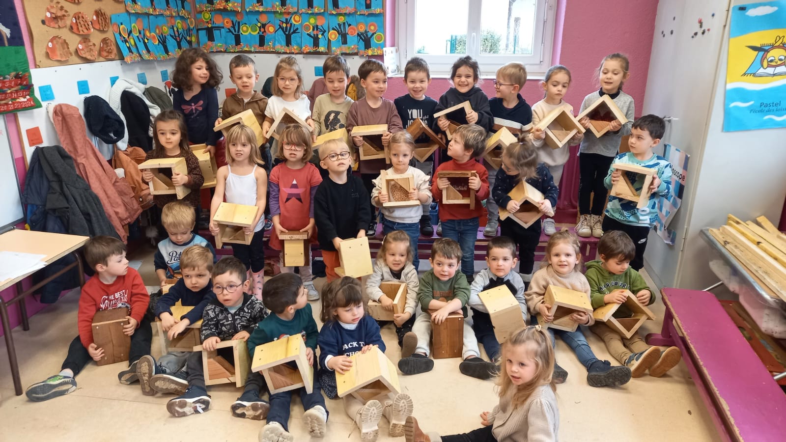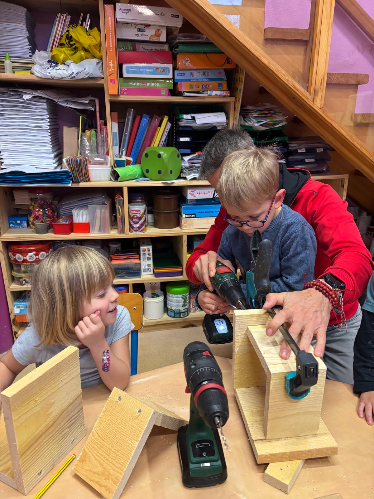 Au cours de cette deuxième période, nous avons construit des mangeoires pour les oiseaux. Et grâce à la participation en matière première de chacun, tout le monde a pu repartir avec sa propre mangeoire!